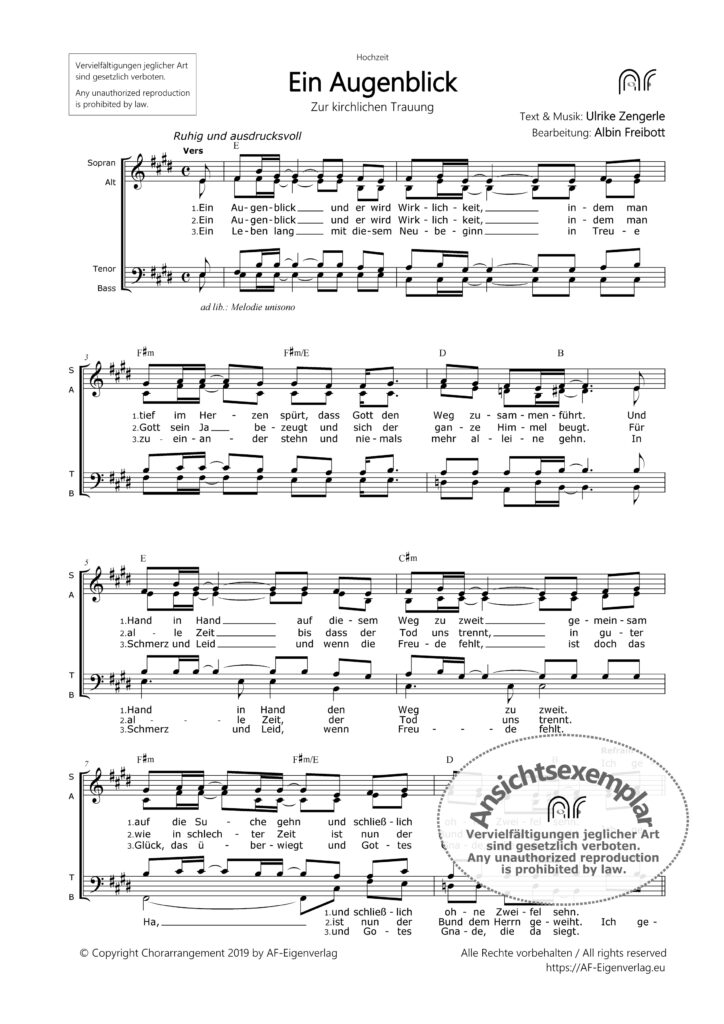 fürGemischten Chor (SATB)Text & Musik: Ulrike ZengerleChorarrangement: Albin Freibott